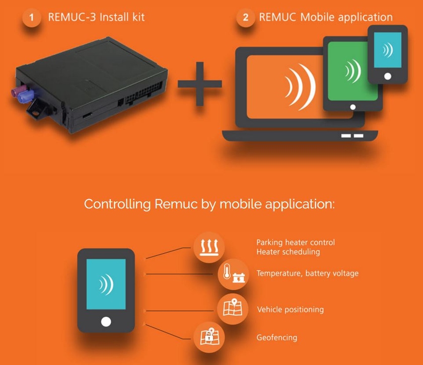 REMUC доступна, как для бизнеса, так и для конечных пользователей. Она состоит из контроллера для установки в автомобиле, облачной платформы и приложения для смартфона.