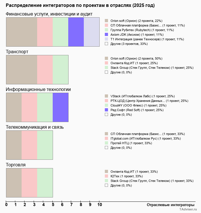 Финансовые услуги, инвестиции и аудитТранспортИнформационные технологииТелекоммуникация и связьТорговля