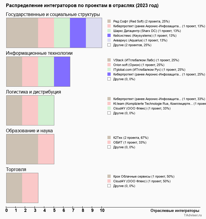 В закладках ниже представлены данные о системах виртуализации, использующихся в России, а также уникальная информация о компаниях-интеграторах и их проектах.