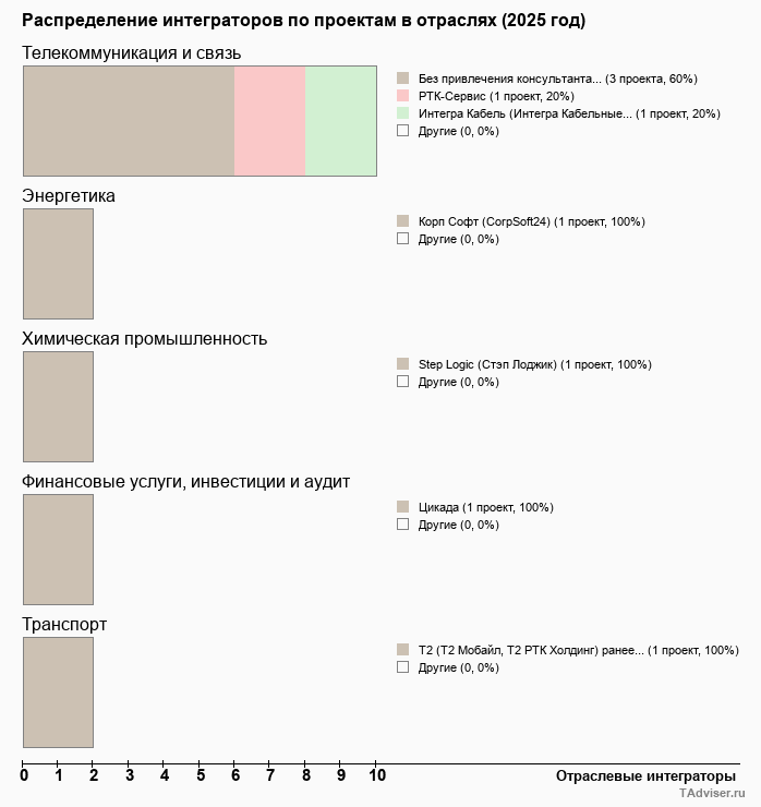 Отраслевое распределение по количеству проектов внедрений
