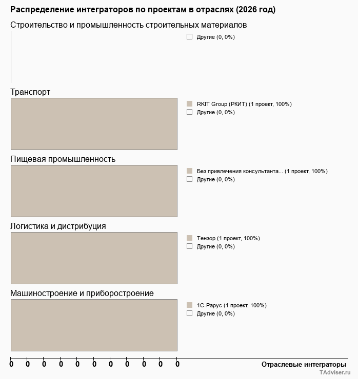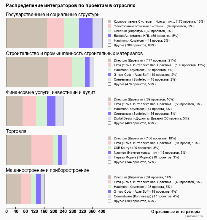 Отраслевое распределение по количеству проектов внедрений