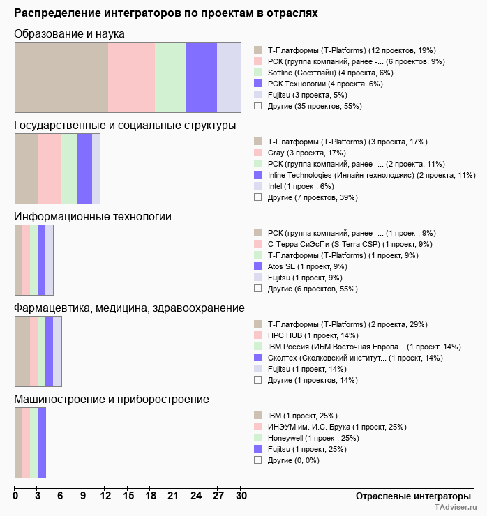 | High Performance Computing Суперкомпьютер | В закладках ниже представлены данные о HPC-системах (суперкомпьютер), использующихся в России, а также уникальная информация о компаниях-интеграторах и их HPC-проектах. Wiki-центр TAdviser приглашает редактора блока HPC (суперкомпьютер). | |||